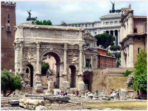 On pénètre dans le Forum par la via dei Fori Imperiali qui part du Colisée ou amphithéâtre Flavien. Parmi les vestiges incontournables, citons en vrac l'arc de Septime Sévère, le temple de Saturne, la maison des Vestales, le temple d'Antonin et Faustine et l'arc de Titus.