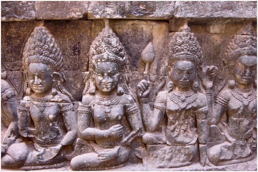 Bas-reliefs qui ornent les murs de la terrasse du Roi lépreux sur le site d'Angkor Thom