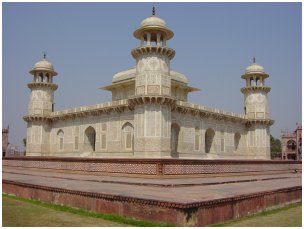Une troisième visite s'impose à Agra, Il s'agit du mausolée d'Itimad-ud-Daulah. Erigé par Nur Jahan, épouse de l'empereur Jahangir, en mémoire de son père Mirza Ghias Beg. Monument décoré d'incrustations de pierres semi-précieuses, étonnante et exquise ornementation en marqueterie de marbres polychromes.
