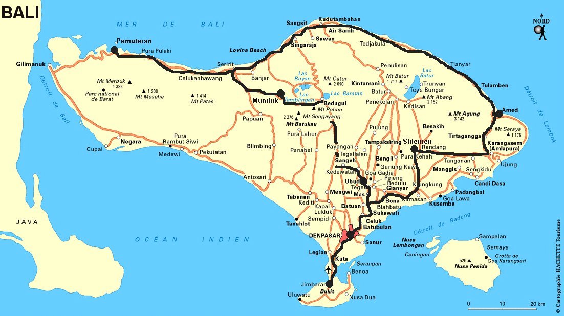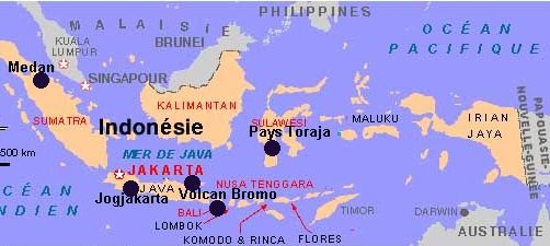 Je vous propose 2 itinéraires ITINÉRAIRE 1 : Sumatra : Médan, lac Toba. Java : Yogjakarta, Surabaya, volcan Bromo. La Sulawesi ( Les Célèbes ) : Ujung Pandang, Rantepao. Bali : Kuta, Legian et Ubud. Circuit effectué en sept. 1996 ( étapes en avion : Médan - Yogjakarta, Yogjakarta - Surabaya, Surabaya - Ujung Pandang, Ujung Pandang - Bali en 3 semaines ). **Moments forts : Le lac Toba à Sumatra, les temples de Borobudur et Prambanan près de Yogjakarta, le volcan Bromo à l'est de Java, le pays Toraja aux Célèbes et Ubud à Bali. ITINÉRAIRE 2 : Singapour : Visite de la ville. Bali : Kuta, Ubud, Munduk, Pemuteran, Amed, Sidemen et Jimbaran. Circuit effectué en sept. 2016 ( étapes en avion : Nice - Paris - Singapour - Bali en 3 semaines ). **Moments forts : Découverte de la ville de Singapour et à Bali, le tour de l'île. La côte nord est superbe et très sauvage. L'intérieur de l'île est extraordinaire avec les rizières et des couleurs magnifiques. Ne pas manquer les alentours de Munduk et de Sidemen. Plus d'infos sur le carnet de route. |