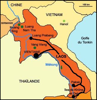 Khong et les îles de Khône et de Det. Le centre : Vientiane. La location de voiture avec chauffeur