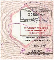 Deux séjours sur l'île d'Embudu ITINÉRAIRE : L'île d'Embudu est très bien située dans l'atoll de Malé Sud. Sa position proche de la célèbre "passe de Vadoo" en fait une des base préférées des plongeurs. 1er séjour (8 jours) : En novembre 1992 suite à un voyage de deux semaines au Sri Lanka. 2ème séjour (15 jours) : En mars 1994. |