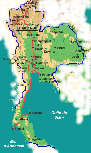 Je vous propose 5 itinéraires Itinéraire 1 : Bangkok et les alentours (Ayatthaya, le marché flottant de Damnoen Saduak, le Nakhom Pathom,et le Rose Garden), Chiang Mai et ses environs (le Doi Suthep, la route de l'artisanat et Lamphun) et Pattaya. Voyage effectué en novembre/décembre 1985 (31 jours) Itinéraire 2 : Pattaya, Bangkok et les alentours (Ayatthaya, le marché flottant de Damnoen Saduak, le Nakhom Pathom,et le Rose Garden), Chiang Mai et ses environs (le Doi Suthep, la route de l'artisanat et Lamphun), Chiang Rai, le triangle d'or, Phuket, Phang Nga et Koh Phi Phi. Voyage effectué en novembre/décembre 1987 (28 jours) Itinéraire 3 : Bangkok, le marché flottant de Damnoen Saduak, le Nakhom Pathom, Kanchanaburi, la rivière Kwai, Chiang Mai et ses environs (le Doi Suthep et la route de l'artisanat), Lamphun, Lampang, Sukhothai et Ayatthaya. Voyage effectué en décembre 1994 (8 jours) Itinéraire 4 : Koh Samui et Koh Pha Ngan. Voyage effectué en mars 1997 (15 jours) Itinéraire 5 : Bangkok en allant au Myanmar. Voyage effectué en février 2003 (4 jours) **Pour les transports intérieurs, aucun problème. Avions, bus, bateaux, taxis et tuks-tuks sont disponibles. Les visas. **Moments forts : Bangkok et ses temples, la remontée du Chao Praya de Bangkok à Ayatthaya, la région du nord (Chiang Mai, Chiang Rai et le triangle d'or), la descente en pirogue accompagnée de l'armée Thaïlandaise sur la rivière Kok entre Chiang Rai et Thaton dans le triangle d'or à la frontière Birmane, l'île sauvage de Koh Phi Phi en 1987. |