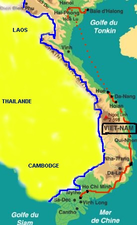 Circuit effectué durant 3 semaines en mars 1995 ( étapes en avion : Hô Chi Minh - Nha Trang, Nha Trang - Da Nang, Hué - Hanoi. Pour circuler, louez une voiture avec chauffeur ou prendre des excursions dans les cafés. Vraiment sympa ). **Moments forts : Le delta du Mekong à My Tho, la charmante petite ville d'Hôi An, la rivière des parfums à Hué, la baie d'Along, les merveilleux paysages de Hoa Lu et Hanoi la capitale. |