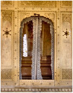 Contrairement aux havelis du Shekavati, celles de Jaisalmer ne possèdent presque pas de fresques murales, mais elles n'en sont pas moins remarquables par le beau travail du grès ocre jaune qui a servi à leur construction.
