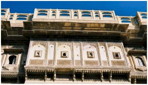 Jaisalmer témoigne encore de son opulence d'antan par de somptueuses résidences de marchands aux façades de grès ocre-jaune finement ciselées. Ces superbes et vastes maisons de maîtres appelées "haveli" sont construites autour de cours intérieures qui assuraient un peu de fraîcheur pendant les grosses chaleurs. Des loggias à colonnettes sont pourvues de balcons et fenêtres à claire-voie.