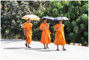 Environ 60% de la population laotienne pratique le bouddhisme Theravada. La plupart sont des lao des plaines. Le bouddhisme semble avoir été introduit à Luang Prabang entre le XIIIème et le XIVème siècle.Le bouddhisme est très important au Laos, où il imprègne la culture et la vie quotidienne. Il s'agit du bouddhisme du "Petit véhicule", comme en Thaïlande et au Cambodge, un bouddhisme ouvert et tolérant, très marqué par l'hindouisme. Les robes safran, de couleur or ou orange des moines sont une constante du paysage laotien.