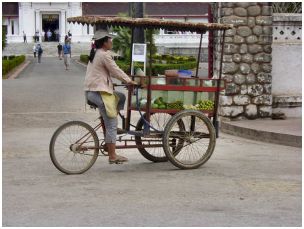 En ville, plusieurs options sont possibles pour transporter des marchandises ou se déplacer : le cyclo-pousse, le tuk-tuk, le samlo ou le vélo. Ce dernier étant le moyen de locomotion le plus répandu dans les villes laotiennes.