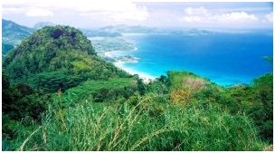 Route de la Forêt Noire : Route sillonnant une forêt où poussent la quasi-totalité des plantes endémiques des Seychelles et quantité des plantes exotiques comme le cannelier, l'albizia, etc. Vue superbe sur toute la côte.