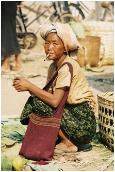 Femme Pa-O portant son bébé sur le dos |