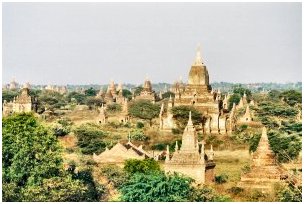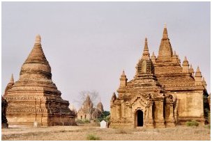 Voici l'un des plus fabuleux sites archéologiques du monde. Véritable patrimoine universel de l'humanité. Situés sur les rives de l'Irrawaddy, 2219 pagodes se dressent, éparpillés dans un horizon immense et changeant de couleur à toute heure du jour. La plupart de ces monuments ont été construits en brique, avec parfois quelques parties en grès.