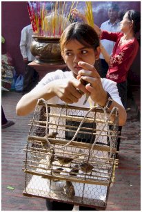 Muy, la vendeuse d'oiseaux (Wat Phnom) |