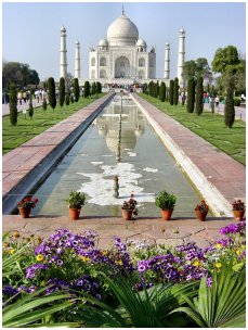 Le Taj possède un joli canal. Bordé de rangées de cyprès, le cours d’eau sert de miroir pour refléter la perfection du Taj.