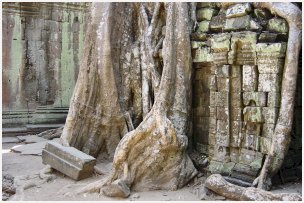 "L'ancêtre Phrom", incontestablement mon préféré. Ta Phrom est un lieu romantique et magique. Ce temple, construit sous Jayavarman VII vers 1186, autrefois l'un des plus gigantesques d'Angkor, est livré à la jungle. La conservation a eu l'excellente idée de l'abandonner à son sort, histoire de laisser aux futurs visiteurs le plaisir de ressentir l'émotion éprouvée par les premiers découvreurs.