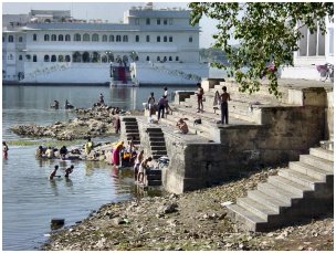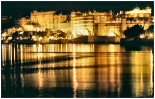 Construite entre un lac et des collines verdoyantes, la cité fut fondée par Udai Singh II au XVIème siècle. Cité aux rues étroites et vivantes, maisons blanchies à la chaux, balcons aux fenêtres minuscules, un climat très doux font d'Udaipur l'une des villes les plus merveilleuses de l'Inde.