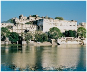La visite la plus marquante d'Udaipur est le City Palace, le plus somptueux palais du Rajasthan. Il fut construit au XVIème siècle sur une colline qui domine le lac Pichola et la ville. Cet incroyable édifice de marbre et de granit apparaît comme une forteresse gigantesque, longue de 250 m, haute d'une trentaine de mètres, d'une étonnante cohérence quand on sait que ce palais fut sans cesse agrandi par les différents maharadjahs qui s'y succédèrent. L'attrait de ce palais réside dans la décoration murale de ses pièces et dans la magnifique situation de ses terrasses.